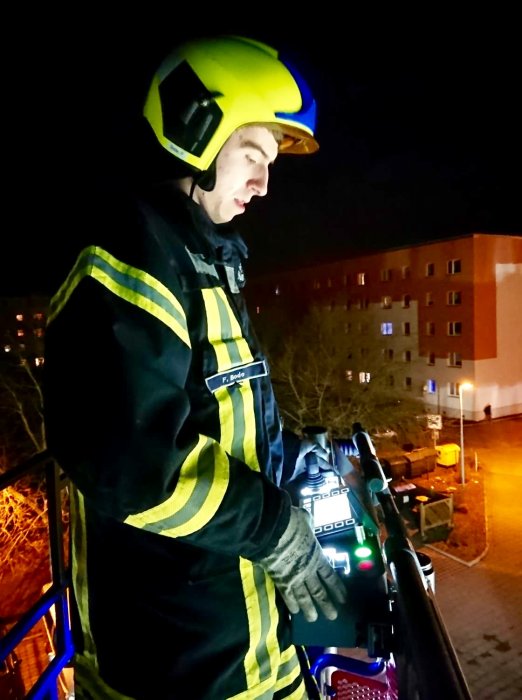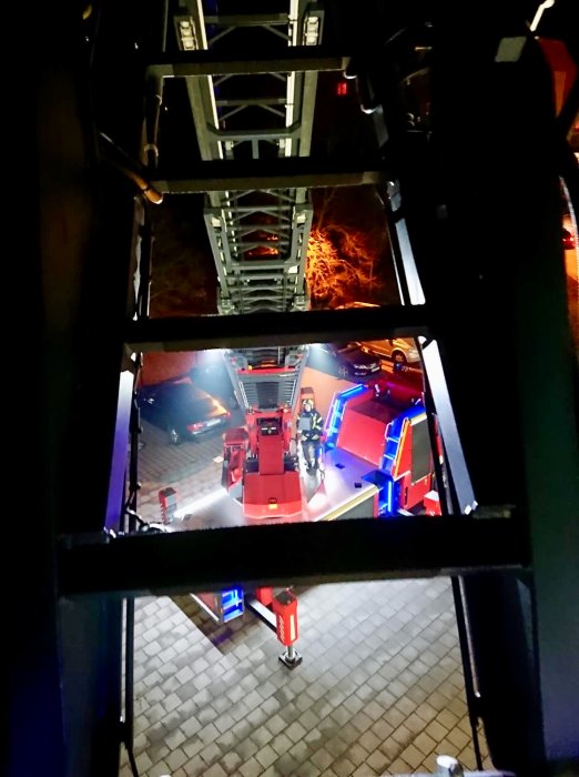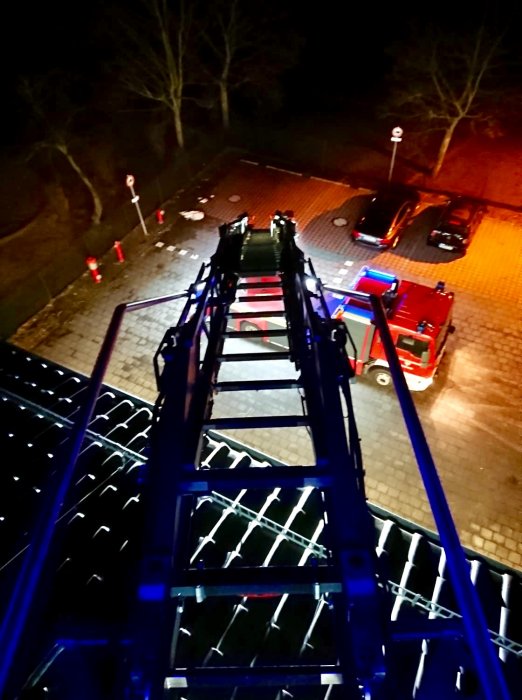 Des Weiteren übten die Kameraden, die auf der Drehleiter eingewiesen sind, das Bedienen des Korbes. So konnten sie in mehreren Übungen das Heranfahren und Absetzen des Drehleiterkorbes am Gerätehaus trainieren.